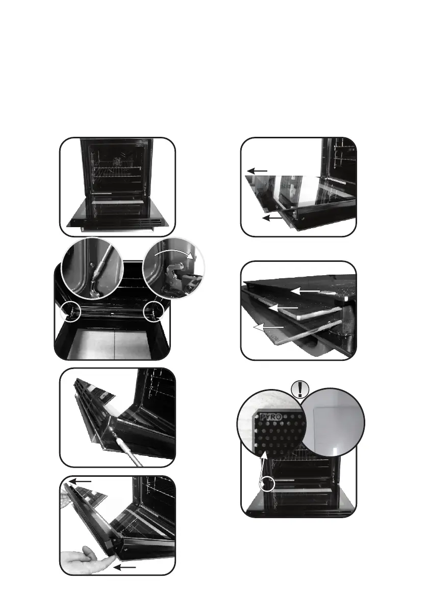 5.6. Vyjměte opatrně sklo ze dvířek trouby (Pozn: u pyrolytických trub vyjměte také druhé a třetí sklo