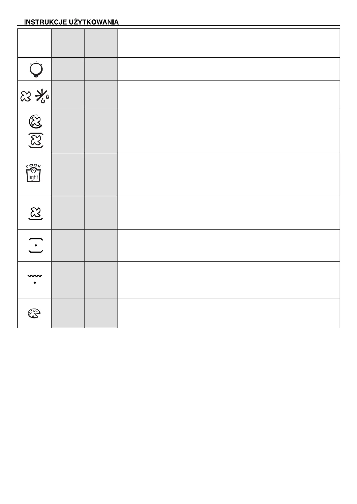 Funkcja ta wskazana jest do pieczenia drobiu, ryb, chleba, pizzy itd.