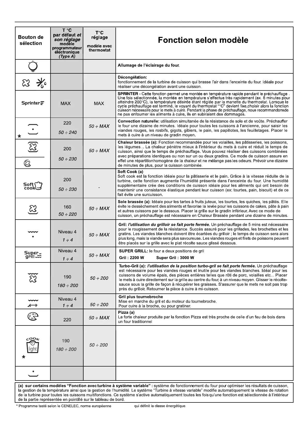Cette fonction est particulièrement adaptée pour la cuisson des viandes et des légumes grillés.