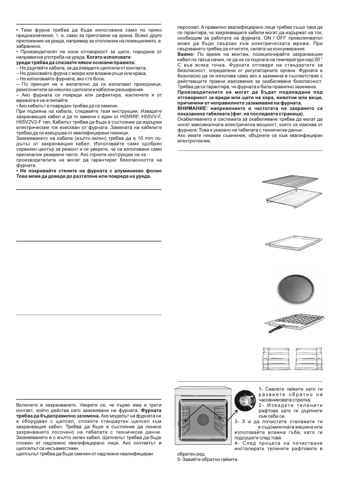 1.7 ОБОРУДВАНЕ ЗА ФУРНА (в зависимост от модела)