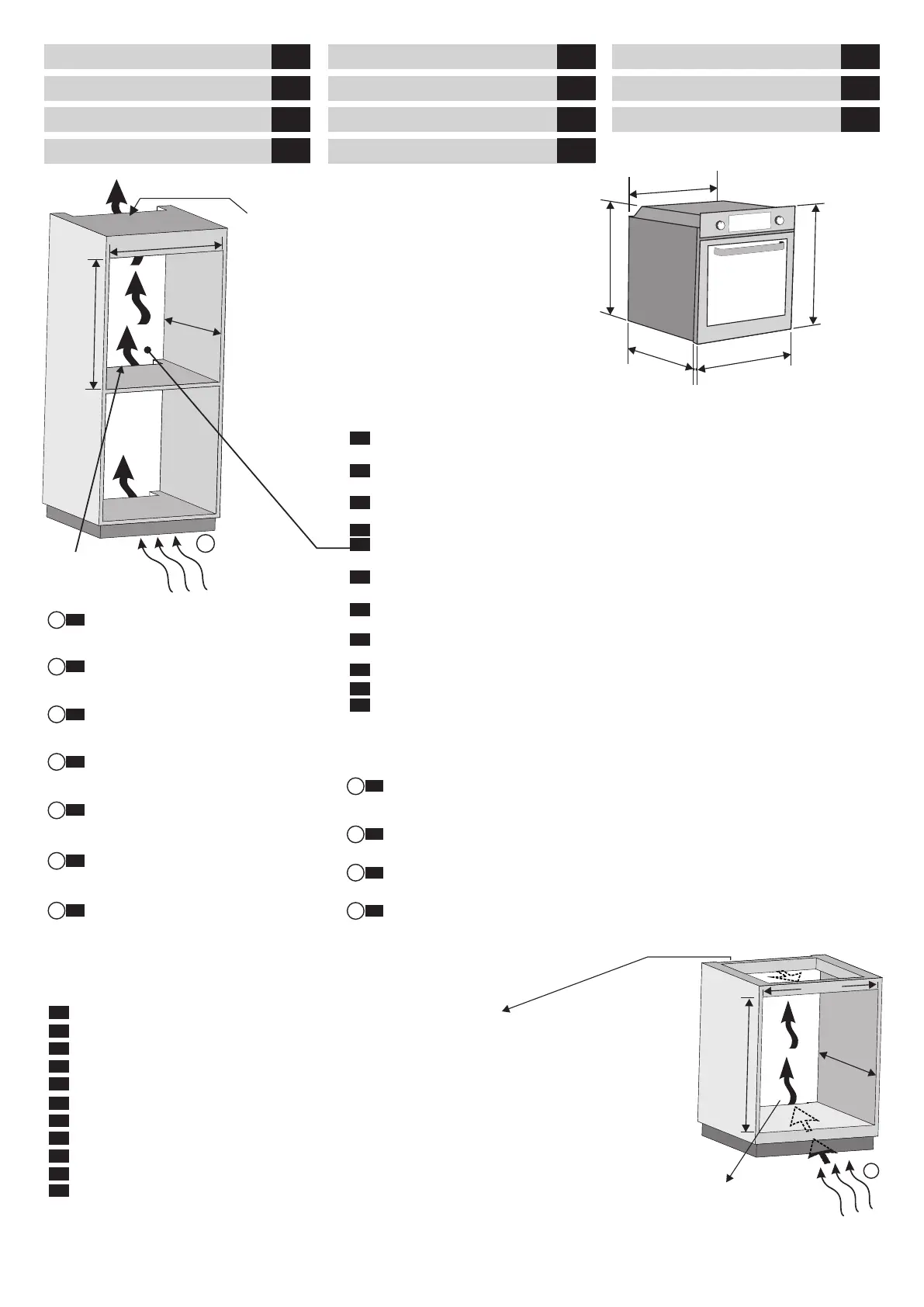If the oven does not have a cooling fan, create an opening 460 mm x 15 mm