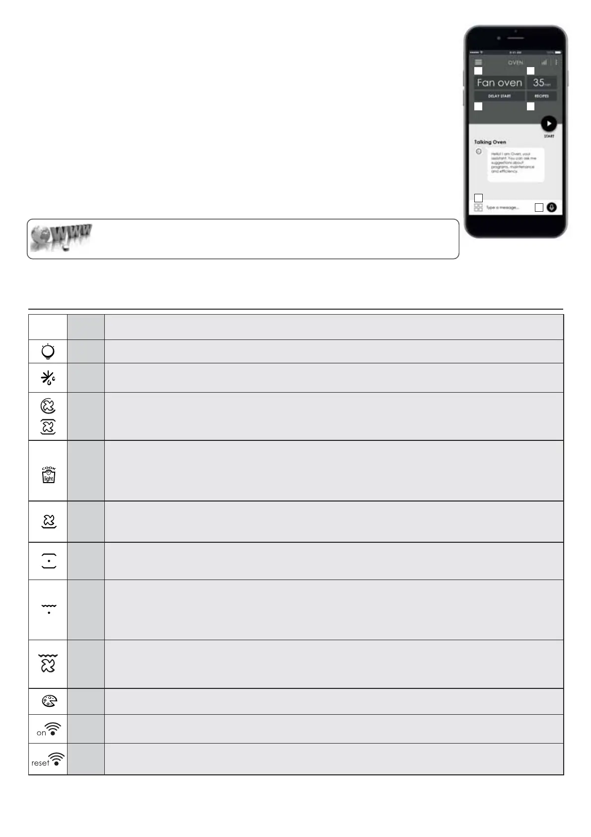 • Wi Fi reset: Nadat u de keuzeknop voor 30” op Wi Fi reset heeft laten staan, zal de Bluetooth inschakelen en zult u de oven