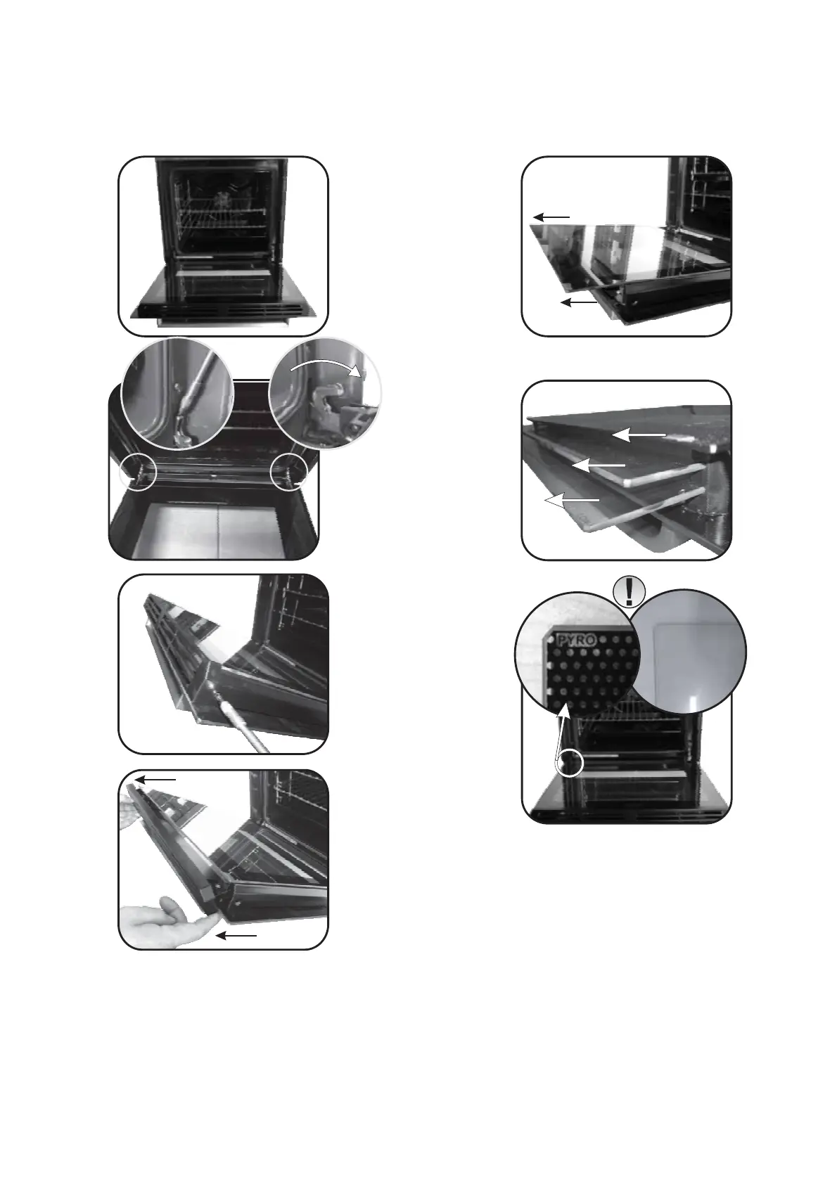 5.6. Vyjměteopatrně sklo ze dvířek trouby (Pozn: u pyrolytických trub vyjměte také druhéa třetí sklo (jsou-li osazena)).