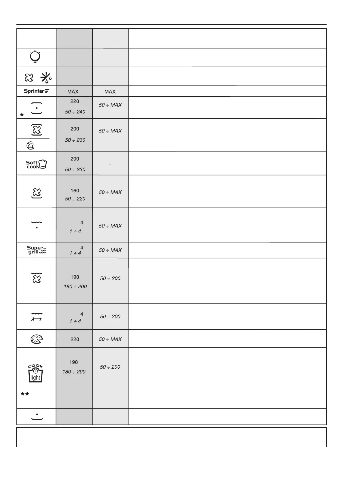 ŽAR : Pri zaprtih vratih pečice.Ta funkcija je primerna za peko tanjših kosov mesa.