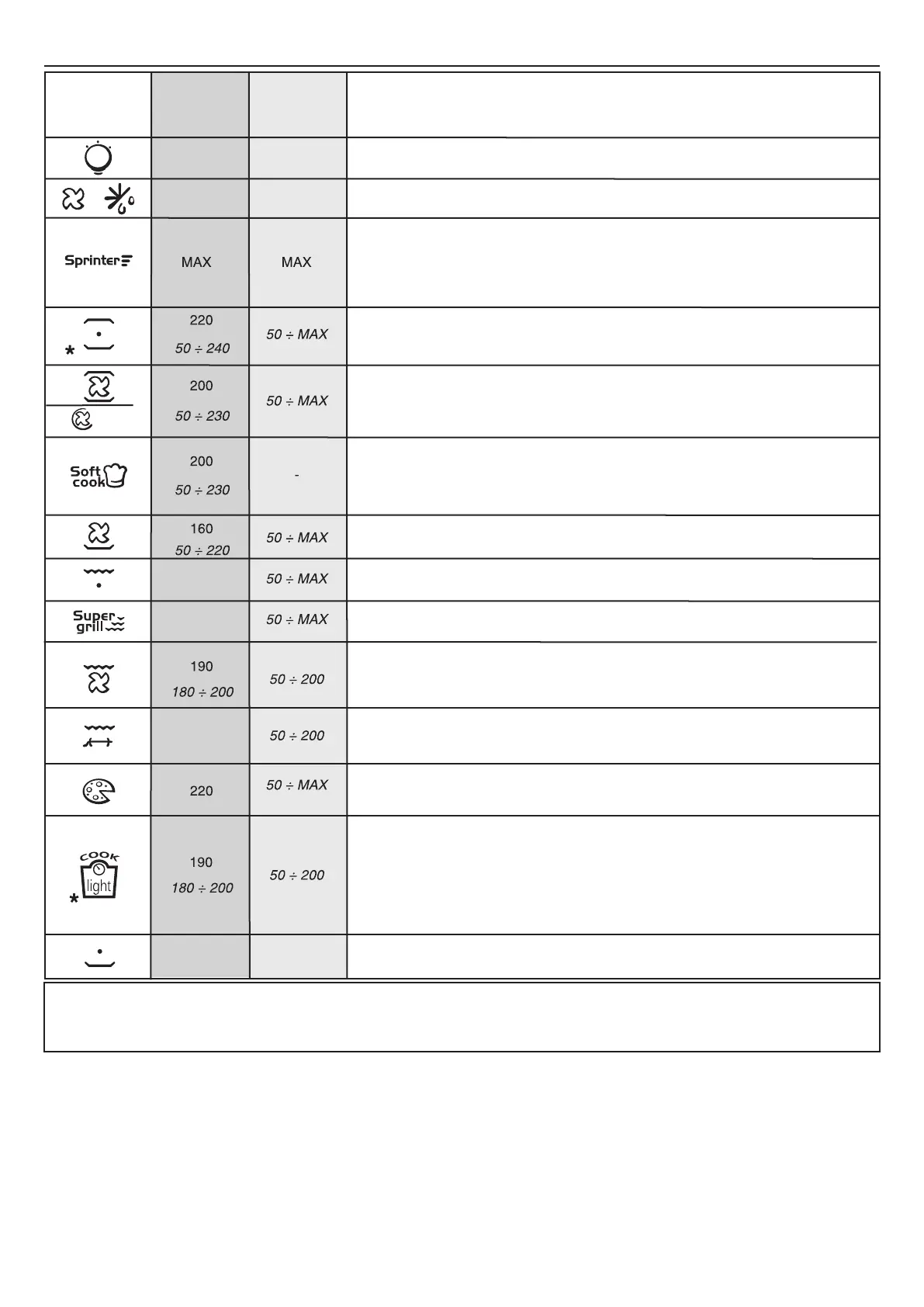Sprinter Questa posizione permette un preriscaldamento rapido del forno. Una volta impostata questa
