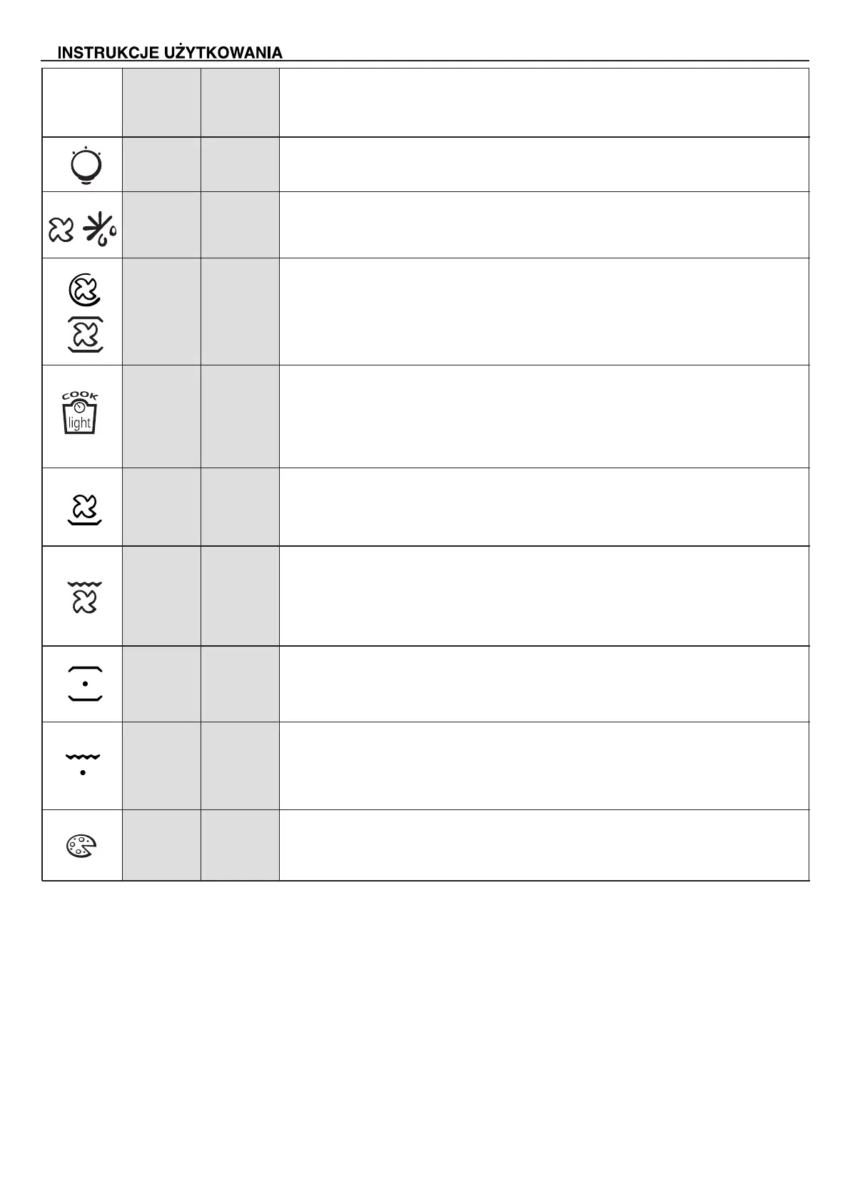 Funkcja ta wskazana jest do pieczenia drobiu, ryb, chleba, pizzy itd.