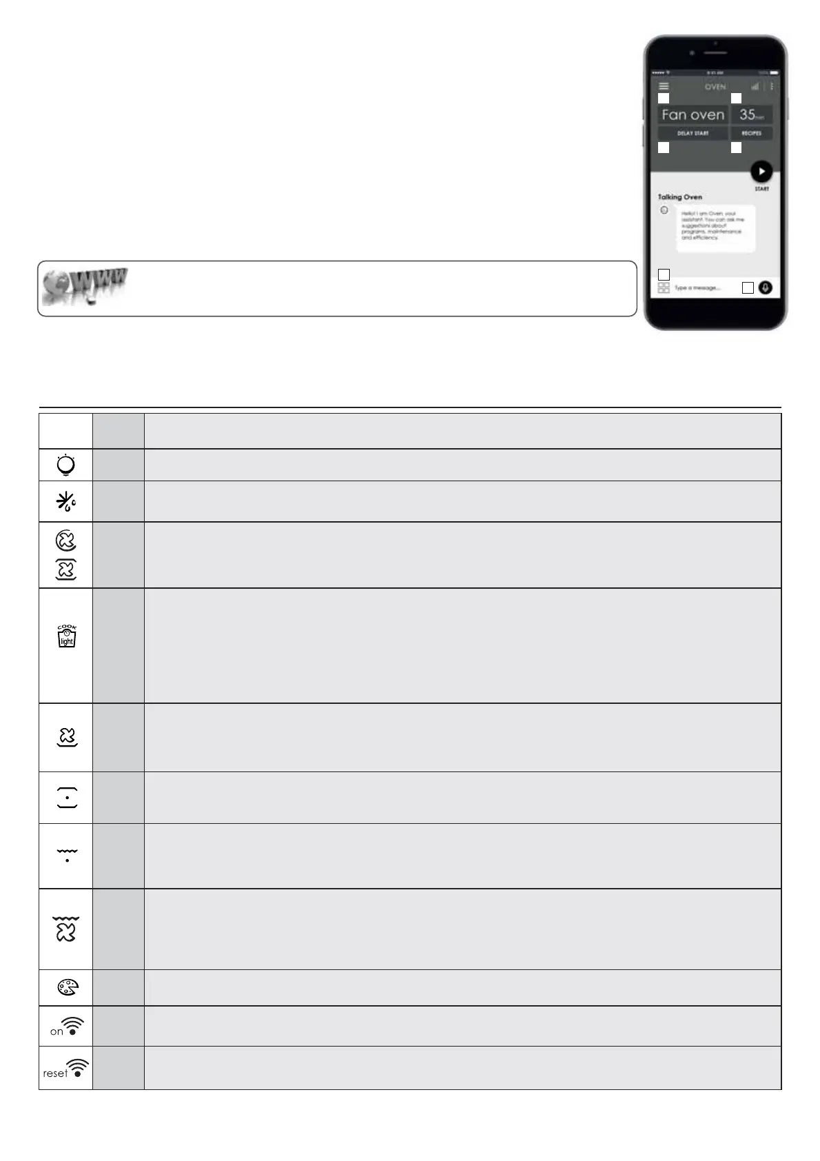 •WiFibekapcsolva:A Wi Fi csak akkor aktív, ha a sütő már be fel van véve a készülékére. Ebben a pozícióban a sütő csak távvezérelhető.