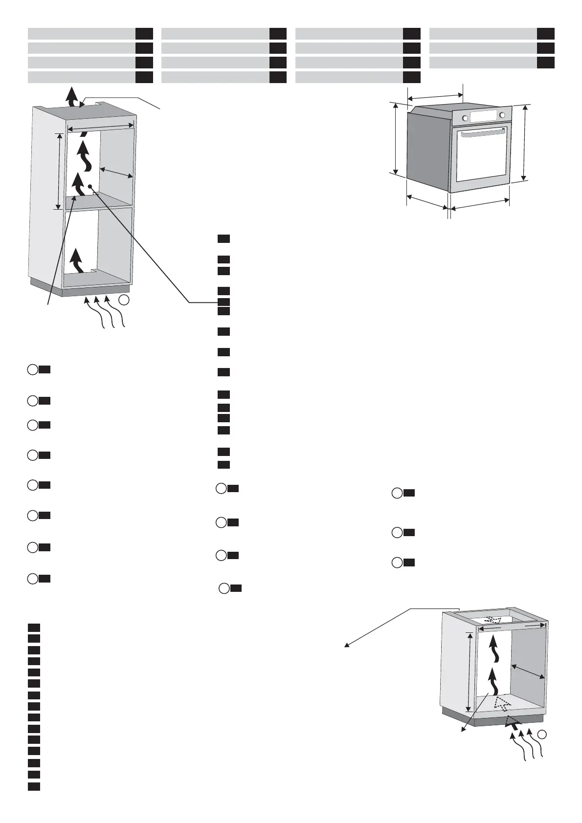 460 mm x 15 mmSi el horno no tiene ventilador de refrigeración, practique una abertura.
