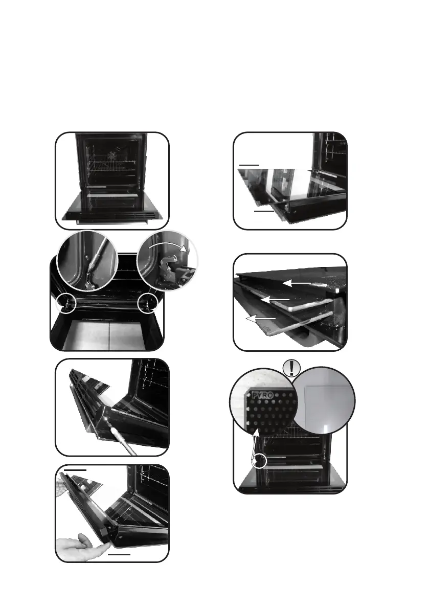 (Nota: em fornos pirolíticos, retirar ainda o segundo e o terceiro vidro (se presente)).