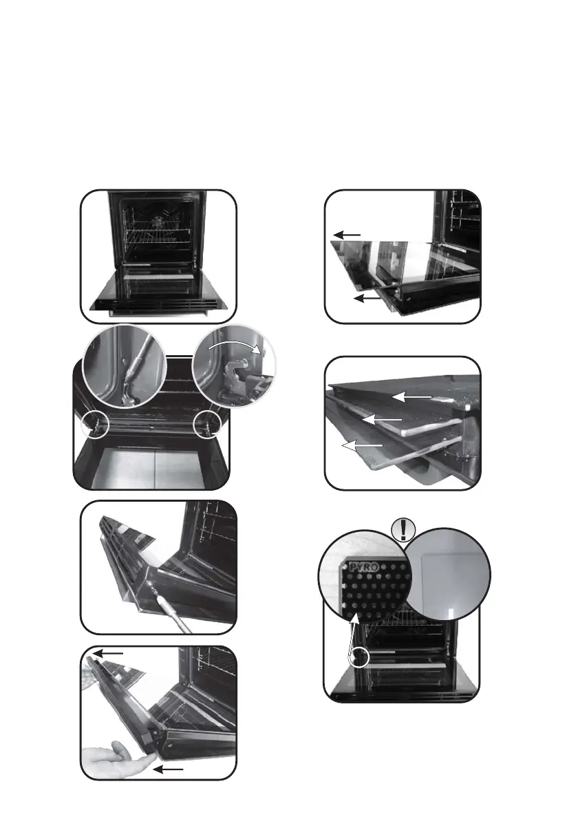 пиролитните фурни също така свалете и второто и третото стъкло, ако има такива).