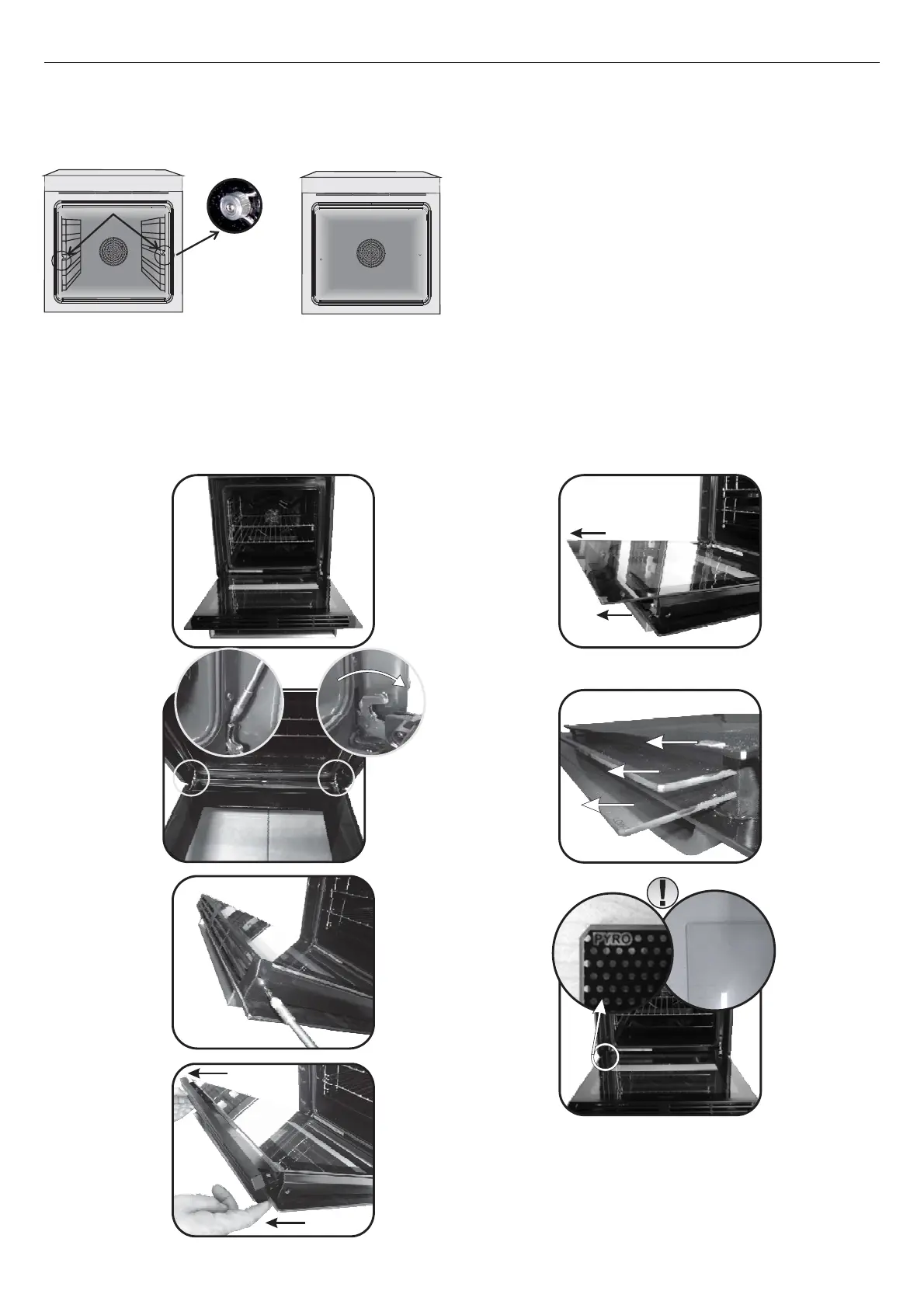 5.6. Retirez le verre, soigneusement de la porte du four (NB: dans les fours de pyrolyse, retirez également les deuxième et troisième verrel'extraire