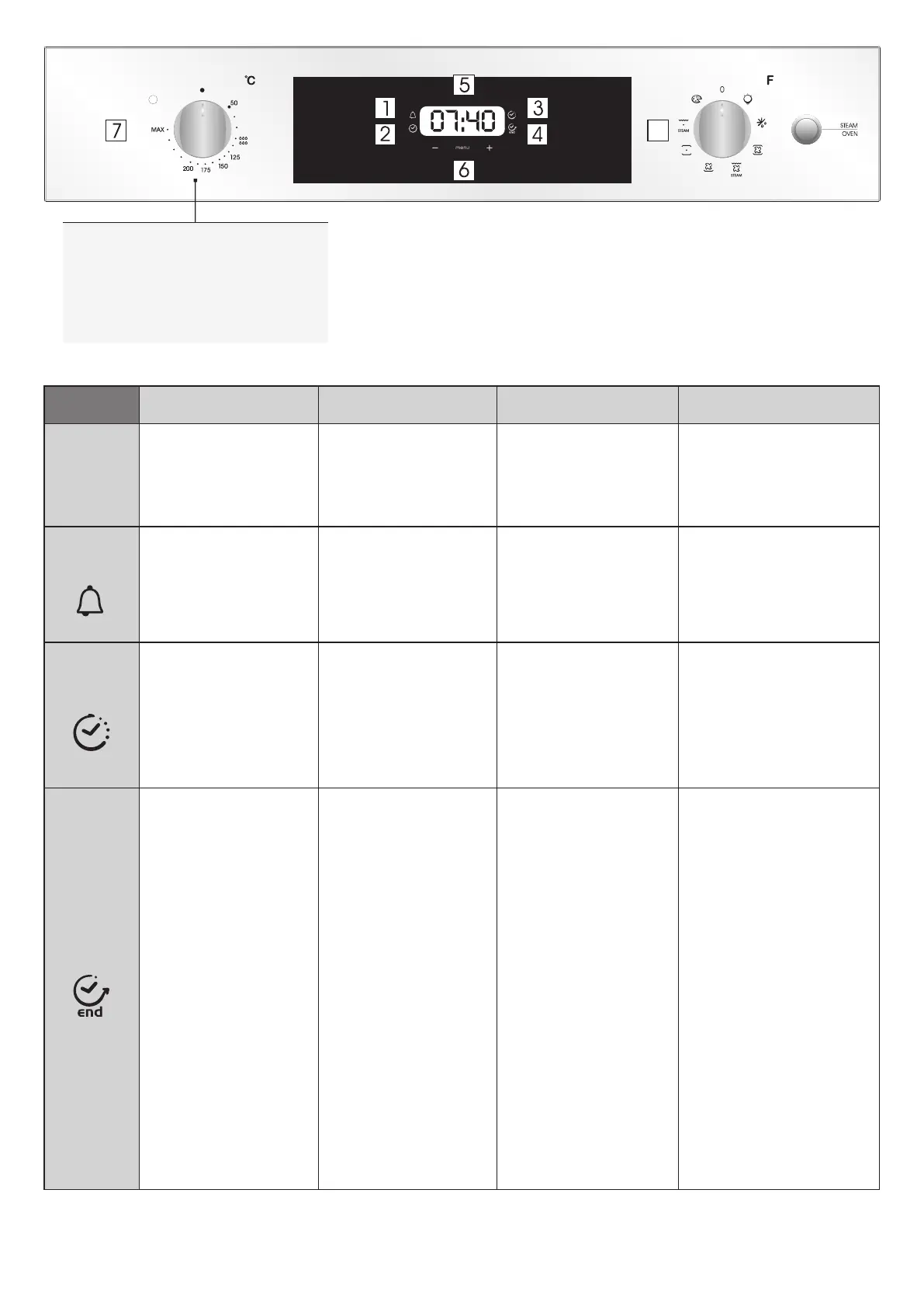 durata della cottura (tasti