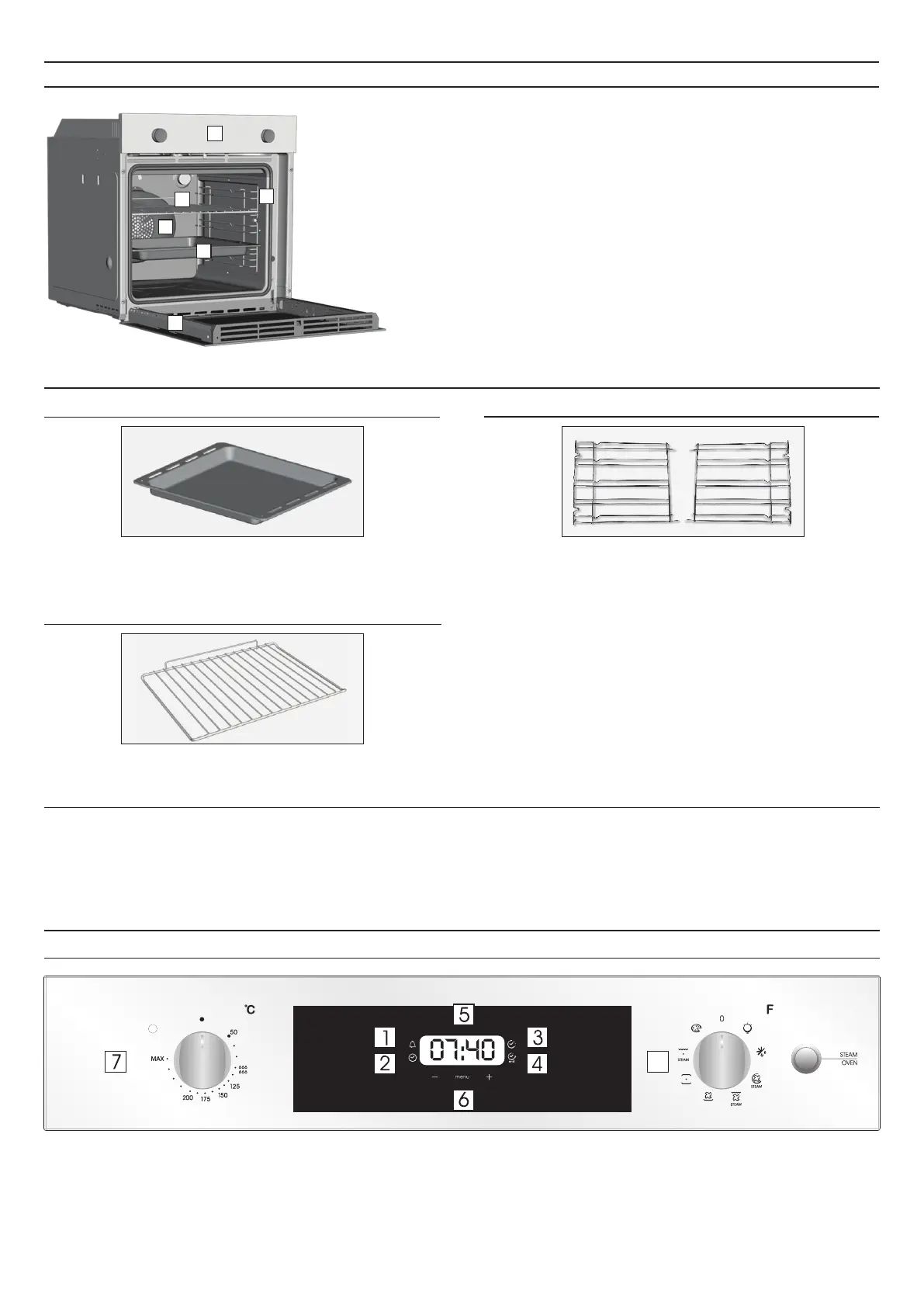 Clean the oven before using for the first time. Wipe over external surfaces with a damp soft cloth. Wash all accessories and wipe inside the