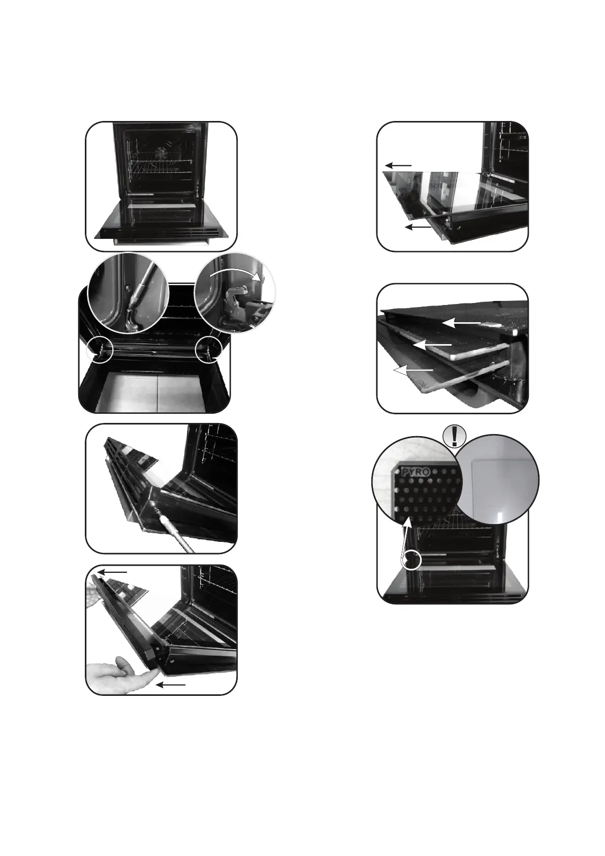 pirolitičnih pečicah odstranite tudi drugo in tretje steklo (če je