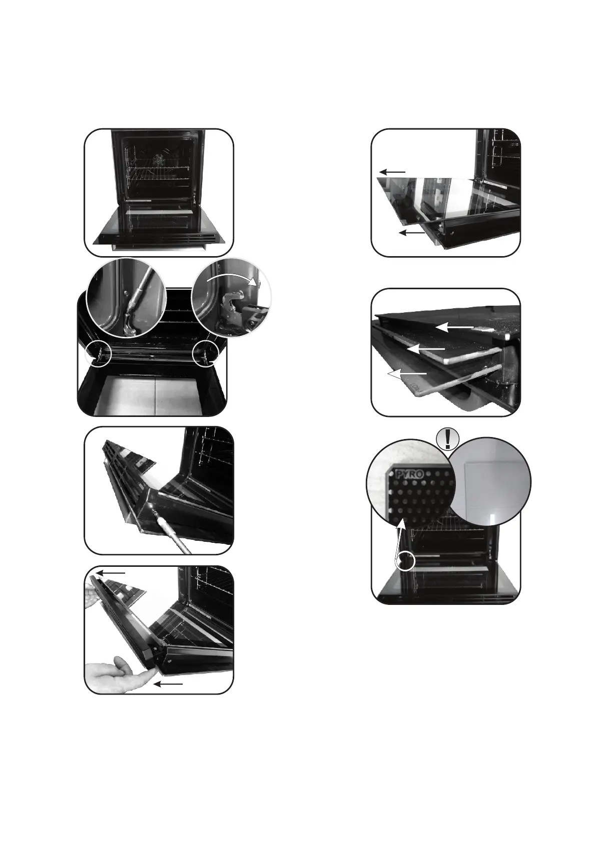 5.6. Die Glasscheibe vorsichtig aus der Ofentür ziehen (Hinweis: Bei