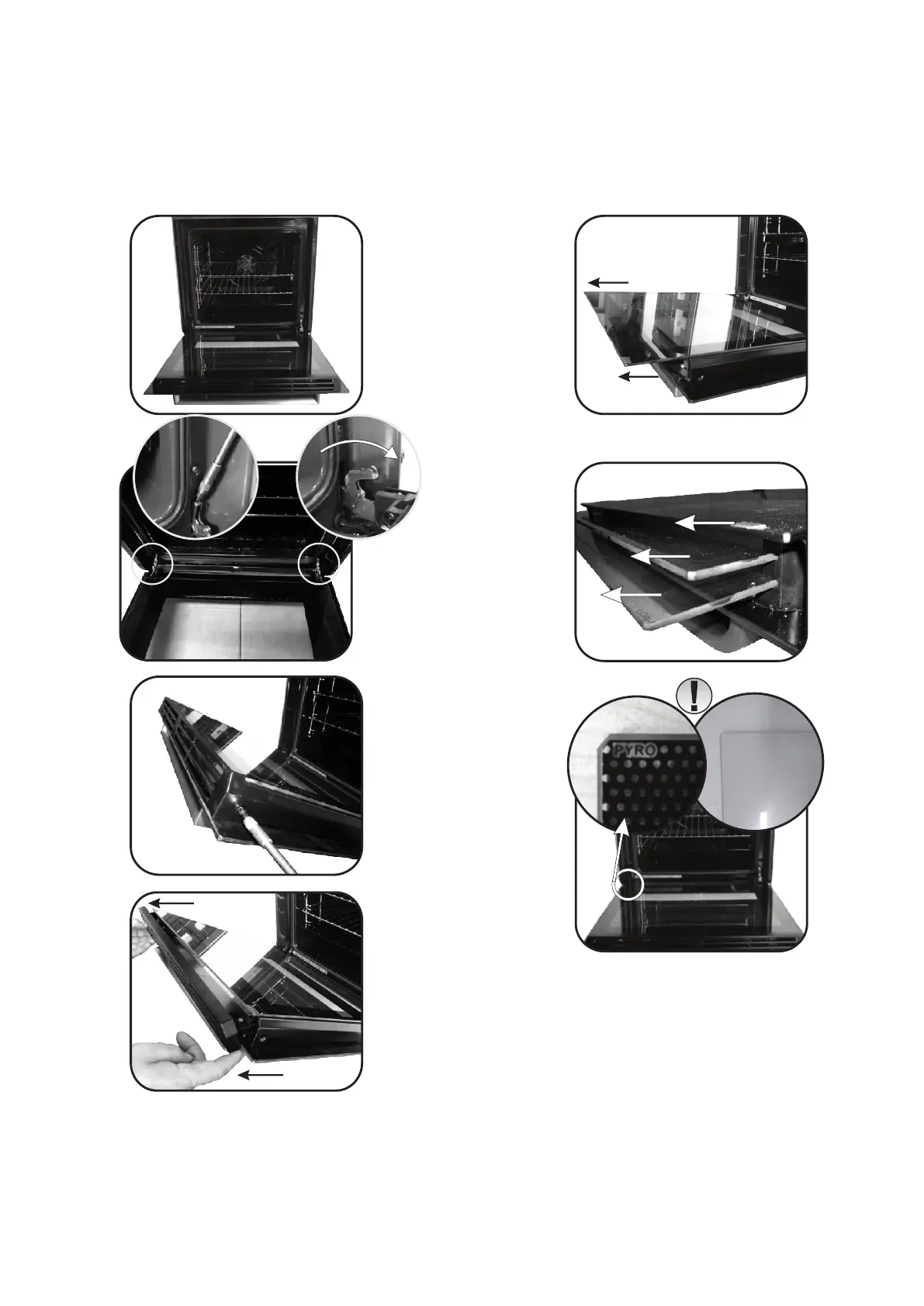 (NB: em fornos pirolíticos, retirar ainda o segundo e o terceiro vidro