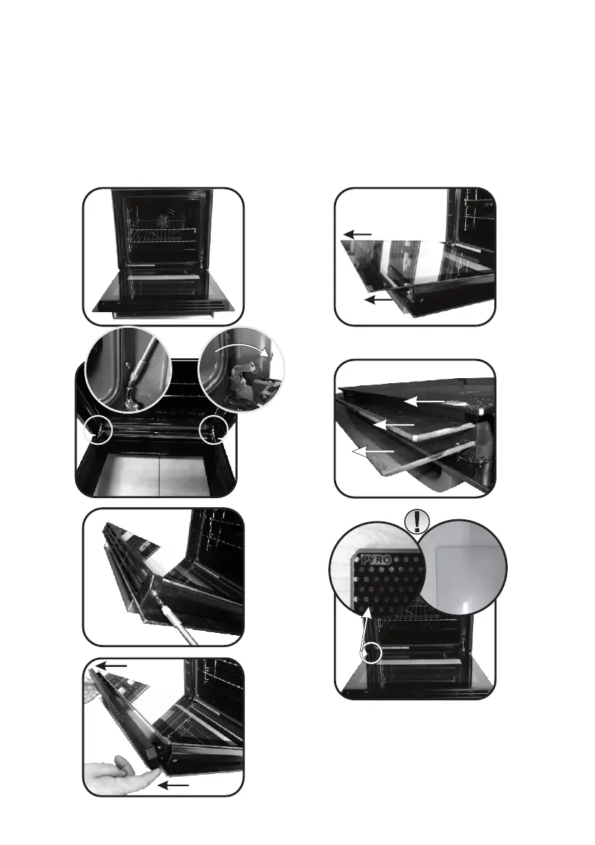 5. 6. Odstranite steklo, pazljivo ga povlecite iz vrat pečice (opomba: v pirolitičnih pečicah odstranite tudi