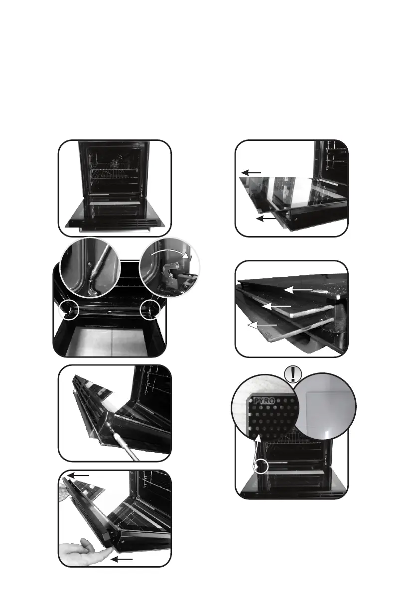 πυρολυτικούς φούρνους, αφαιρούμε επίσης το δεύτερο και το τρίτο γυαλί (εάν υπάρχει)).