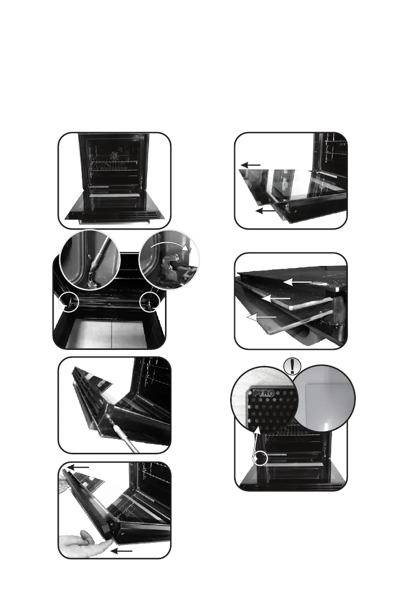 5.6. Camı dikkatli bir şekilde fırın kapağından çekerek çıkarın (Not: pirolitik fırınlarda ikinci ve üçüncü