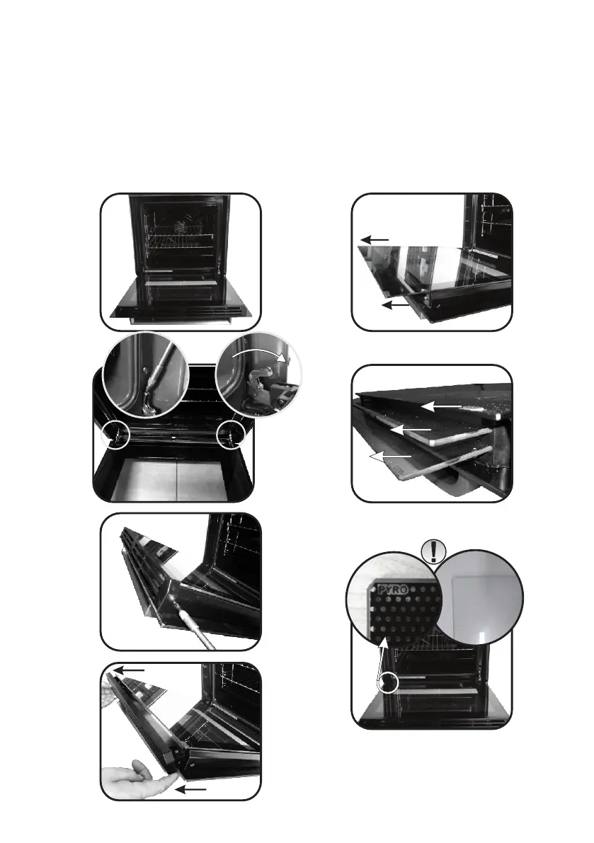 5.6. Retirez le verre, soigneusement de la porte du four (NB: dans les fours de pyrolyse, retirez l'extraire
