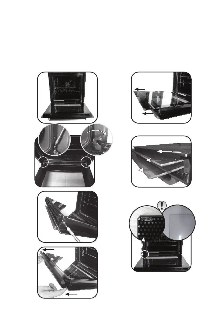 5.6. Retirez le verre, soigneusement de la porte du four (NB: dans les fours de pyrolyse, retirezl'extraire
