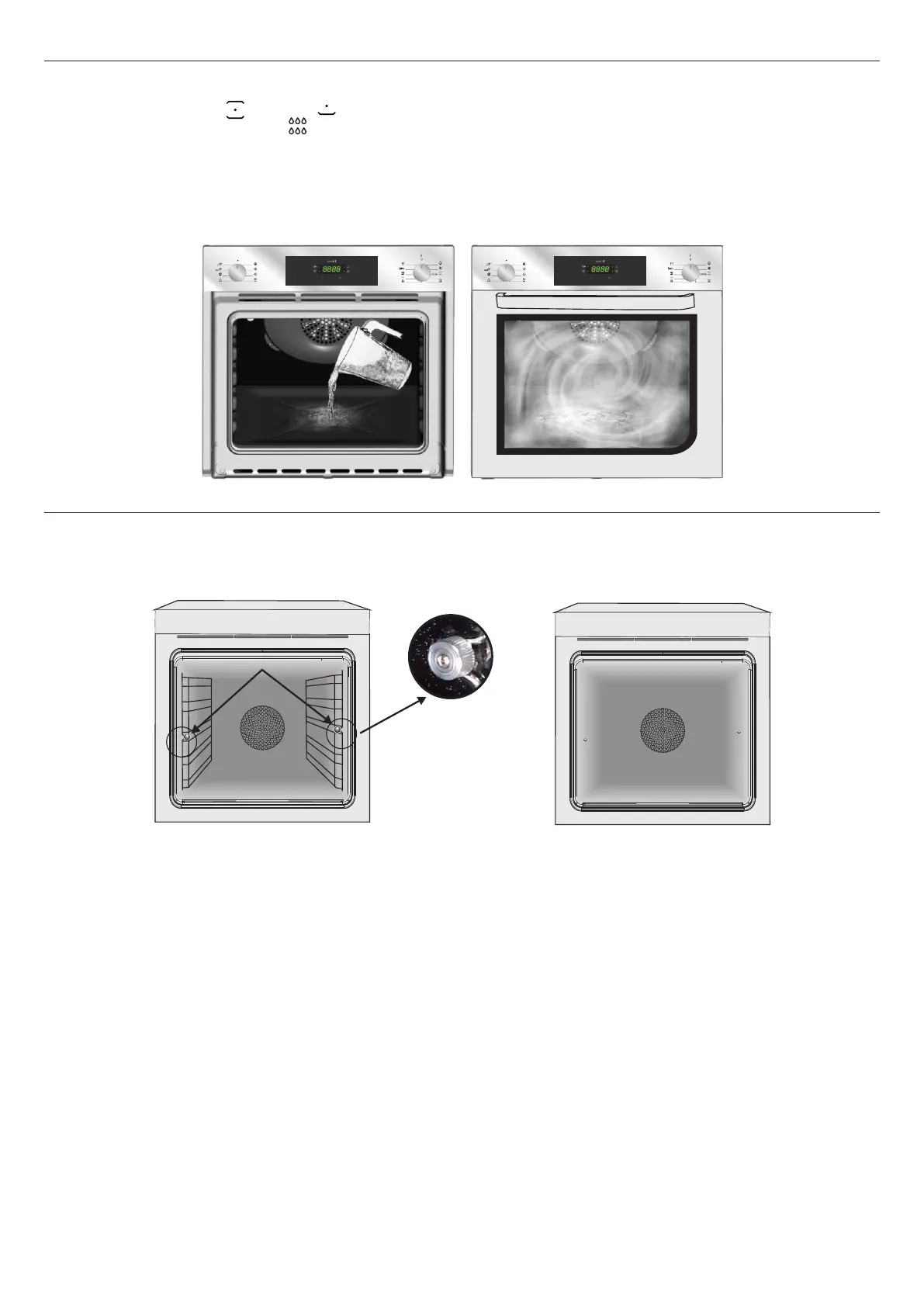 1. Pour 300 ml of water into the Aquactiva container at the bottom of the oven.
