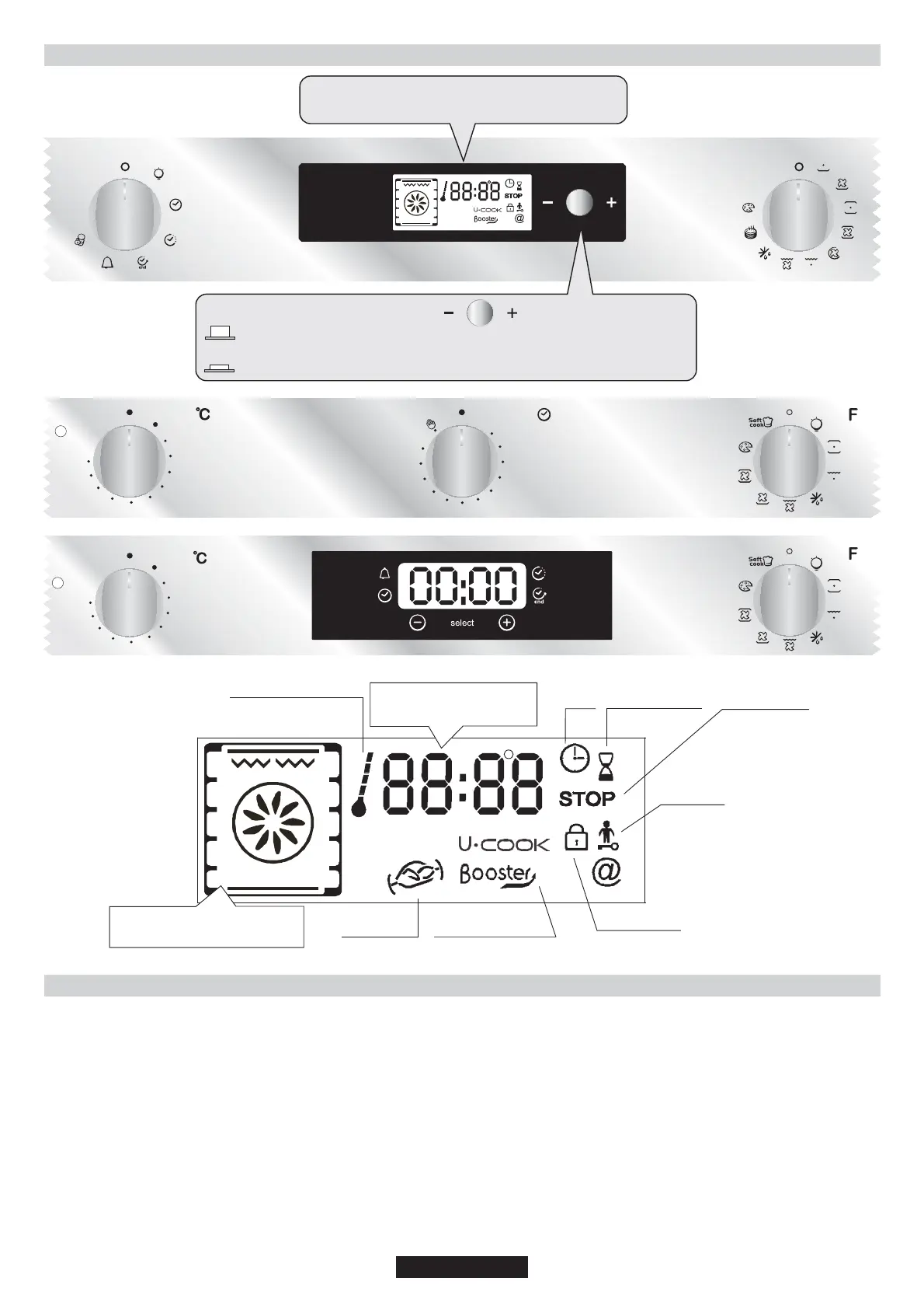 Wyświetlacz: czas, tryb programowania pieczenia,