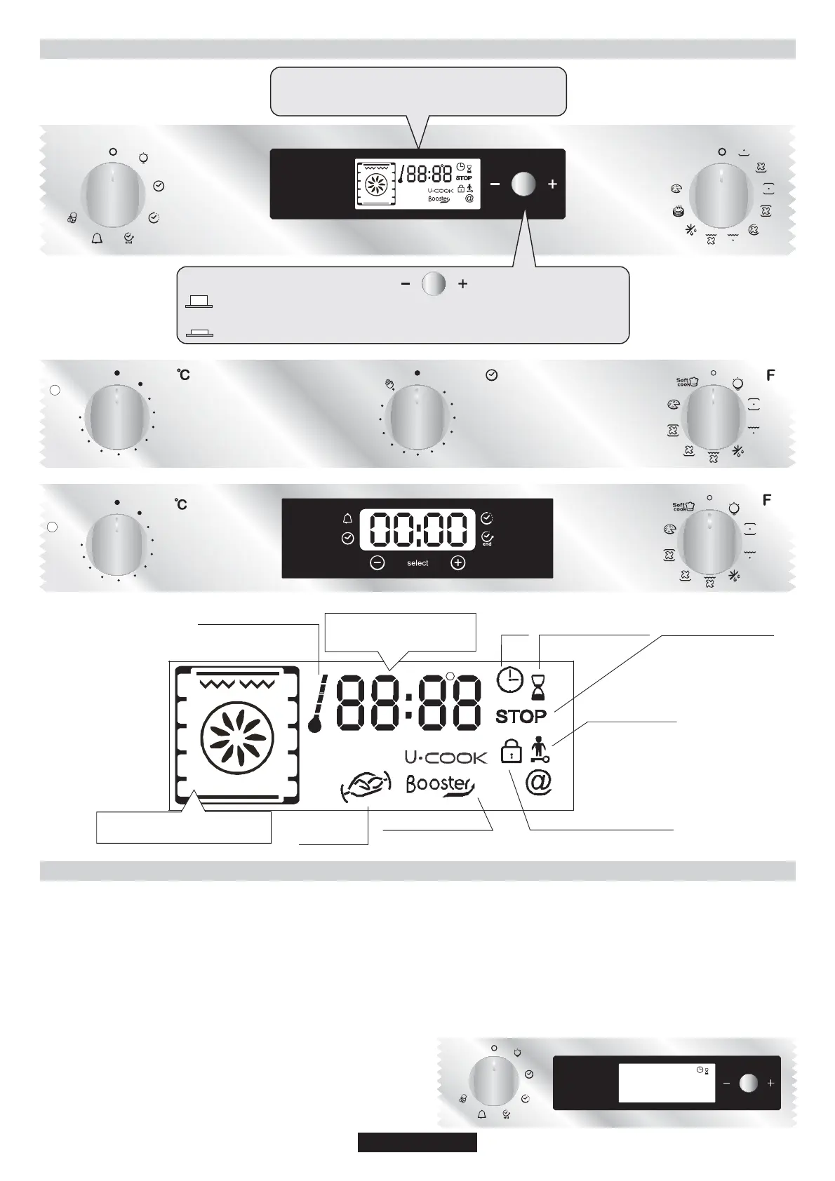 Otočením na symbol osvětlení můžete zapnout osvětlení trouby, i když