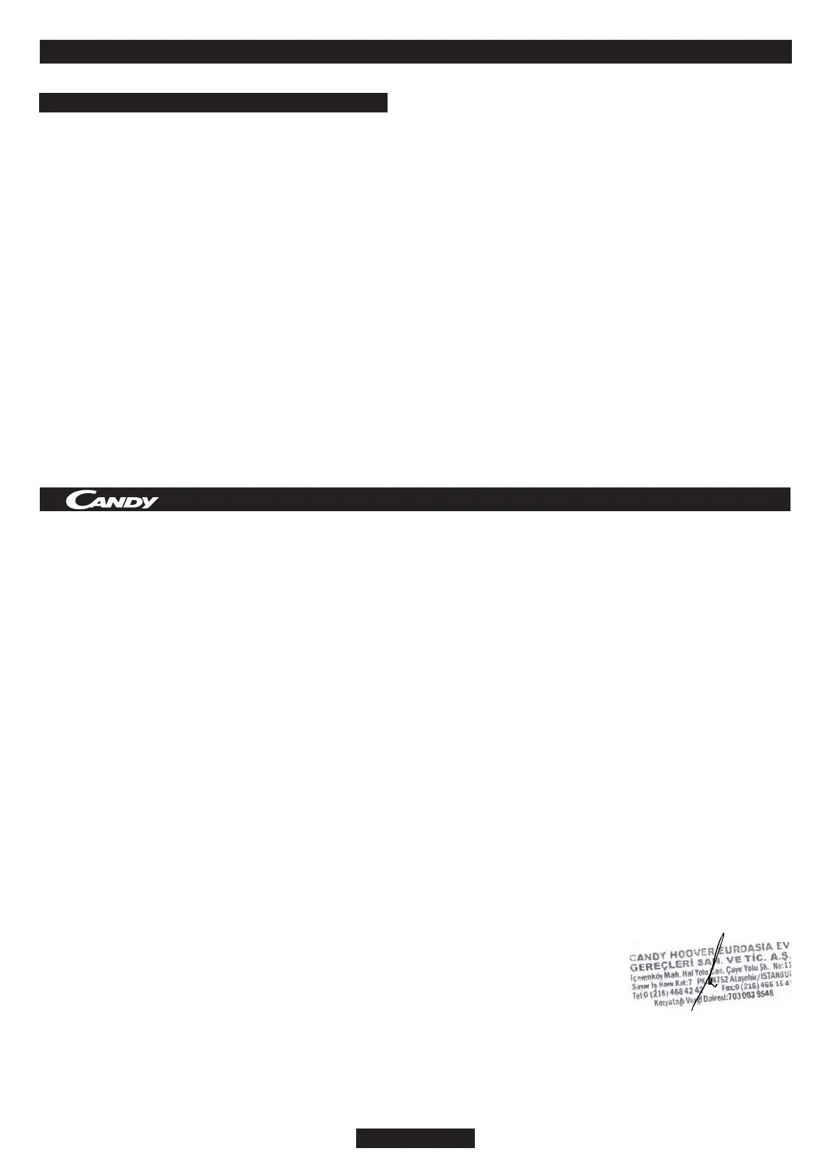 Candy Hoover Euroasia tarafından sağlanan garanti şartları aşağıdaki koşullarda geçersiz olacaktır.
