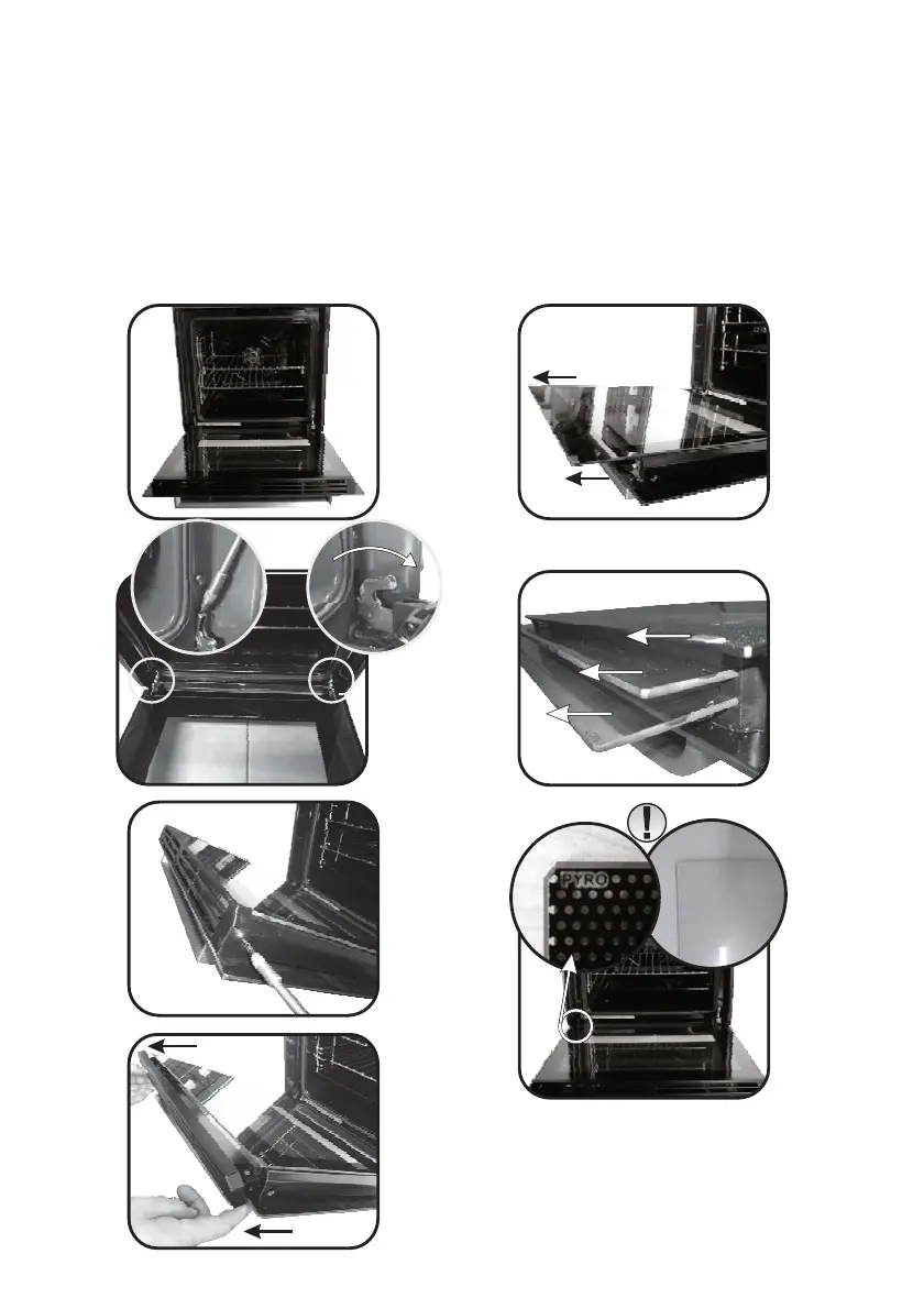 5.6. Die Glasscheibe vorsichtig aus der Ofentür ziehen (Hinweis: Bei Backöfen mit Pyrolyse-