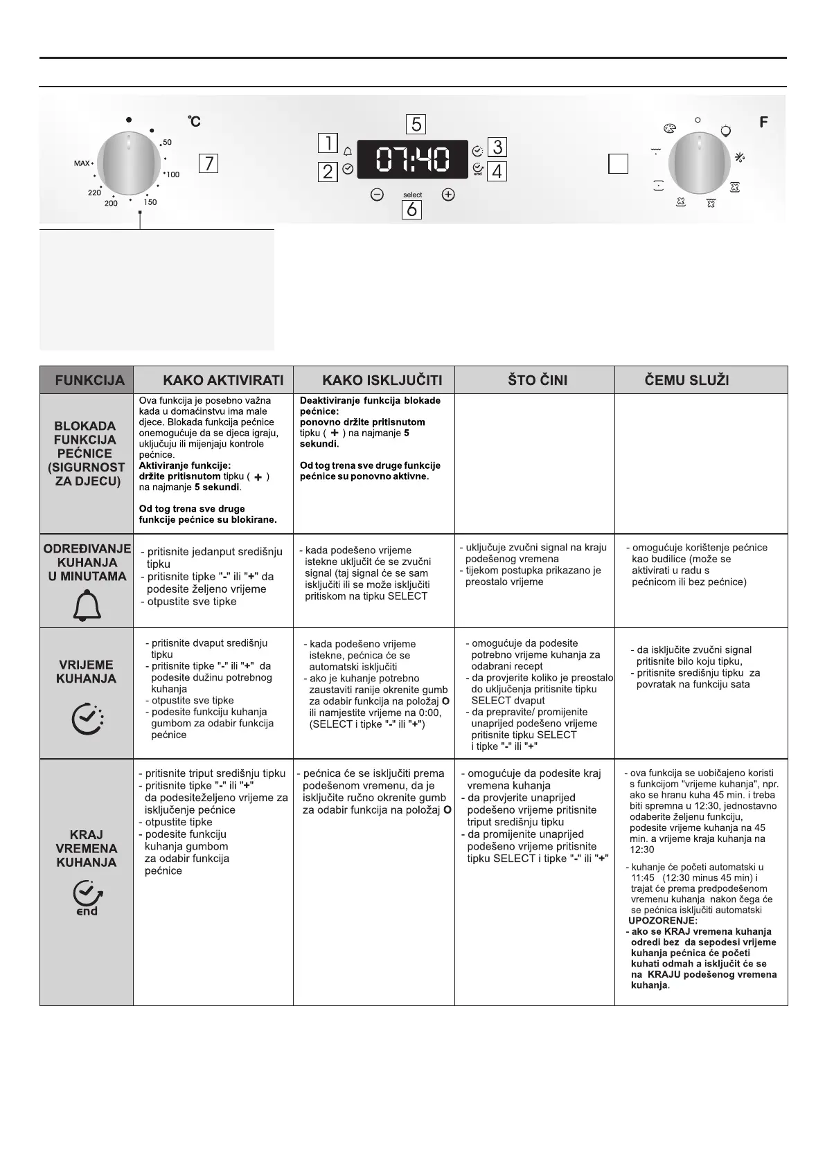 PAŽNJA: Pećnica radi samo kada je postavljen sat.