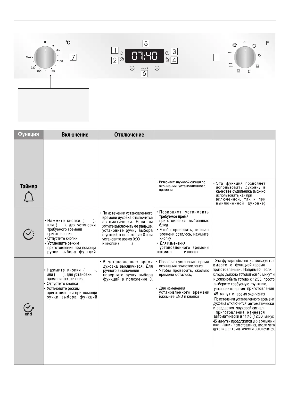 ВНИМАНИЕ: Духовка будет работать только после установки часов.