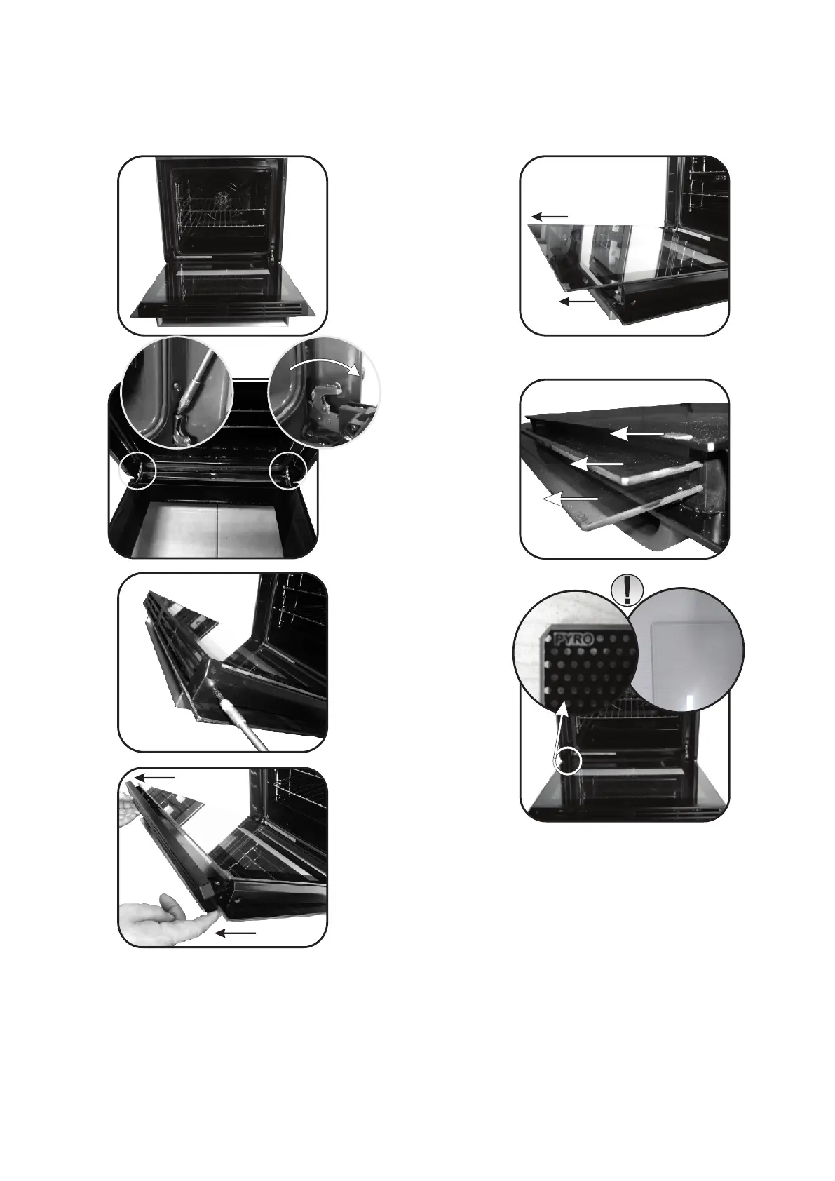 5.6. Remove the glass, carefully extracting it from the oven door (NB: in pyrolytic ovens, also remove the second and third glass (if present)).