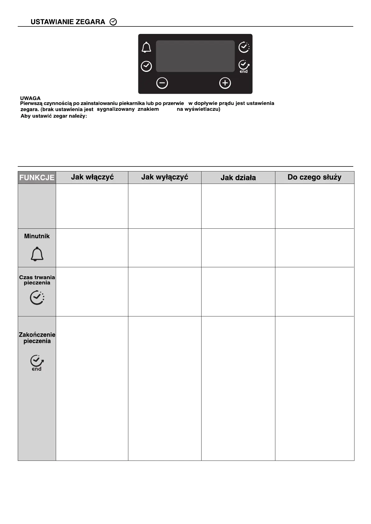 UWAGA: Piekarnik działa tylko jeżeli zegar jest ustawiony.