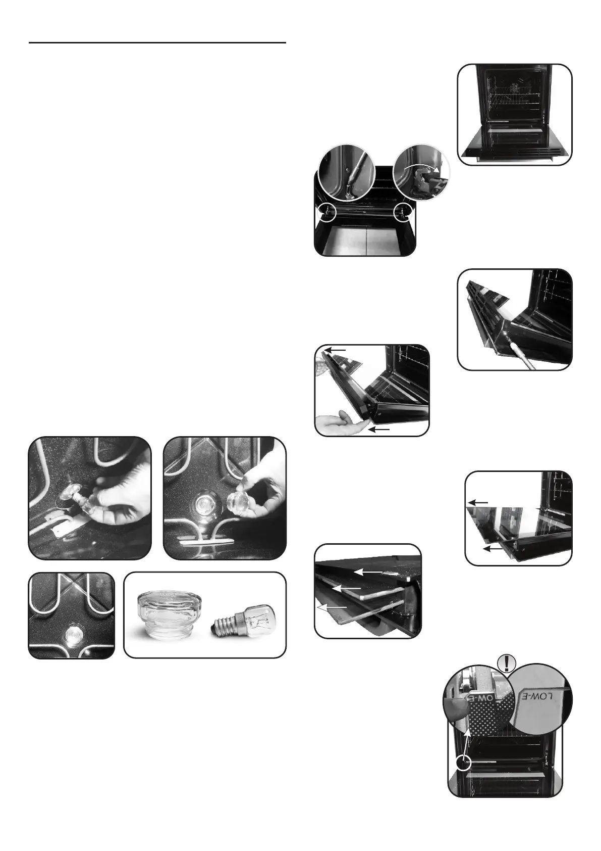 skla dvířek trouby, neboť můžete poškrábat povrch.