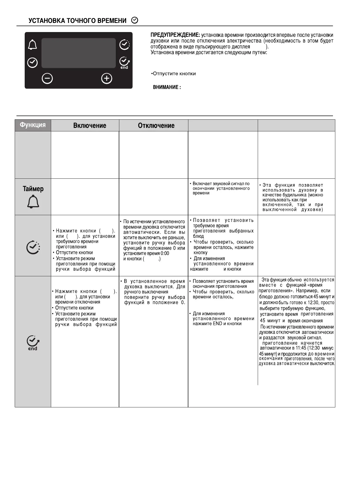 Духовка будет работать только после установки часов.