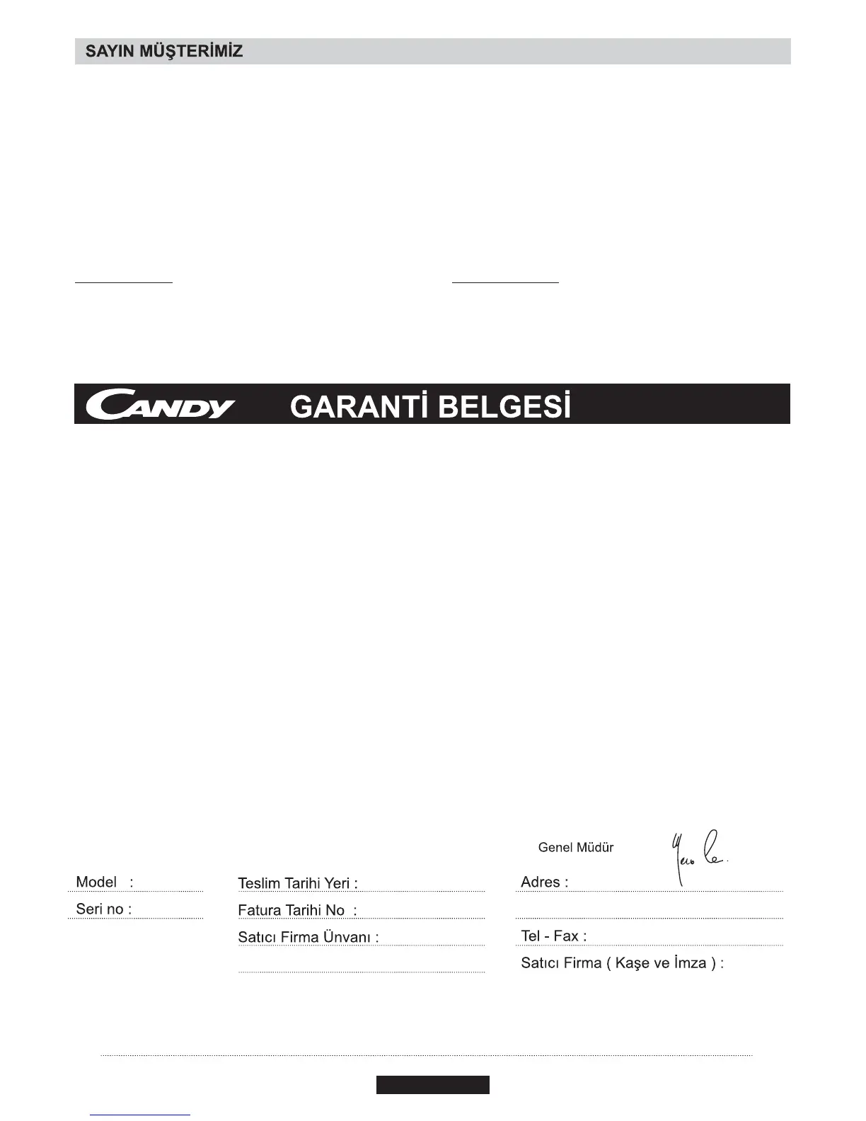 1.Ürünün teslim tarihinden itibaren, garanti süresi içinde kalmak kaydıyla, bir yıl içersinde en az dört defa veya Candy Hoover Euroasia Ev Gereçleri