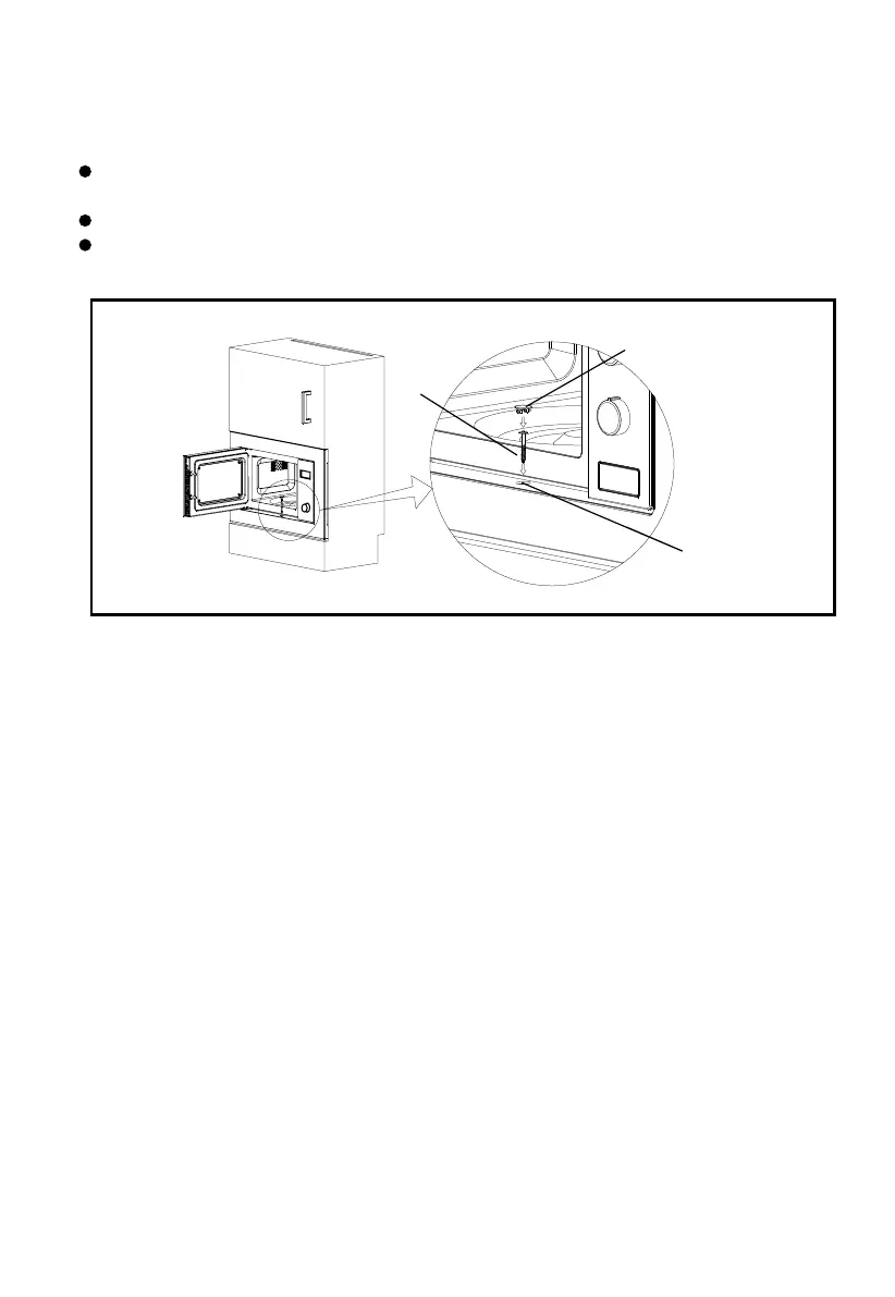 2. Open the door; fix the oven to the cabinet with SCREW B at the