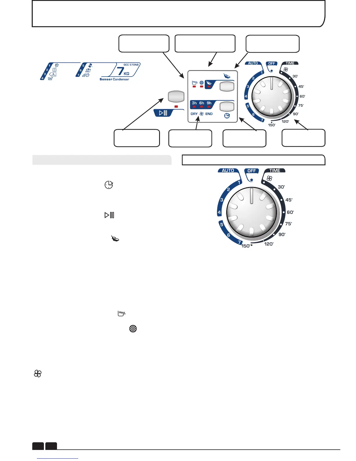 Bouton Séchage Délicat – appuyez pour