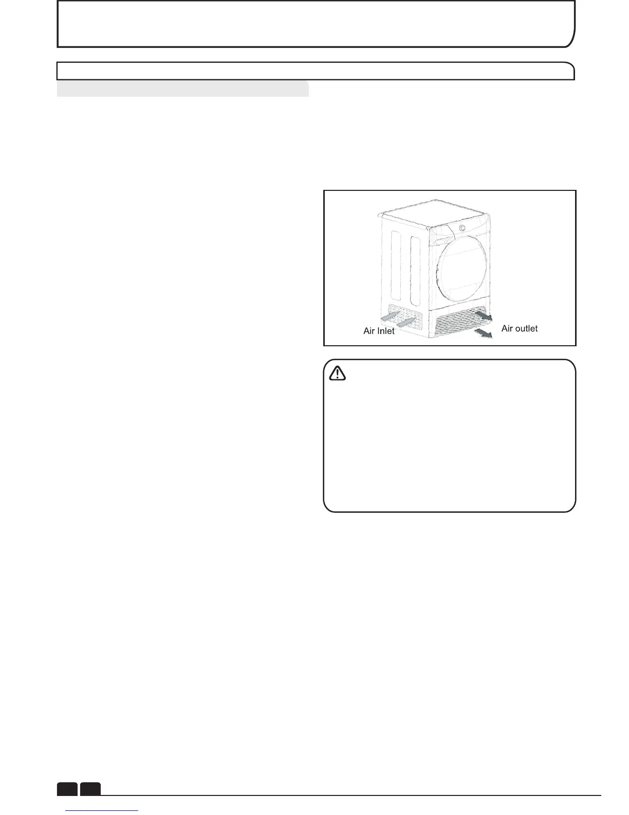 • NEVER install the dryer up against
