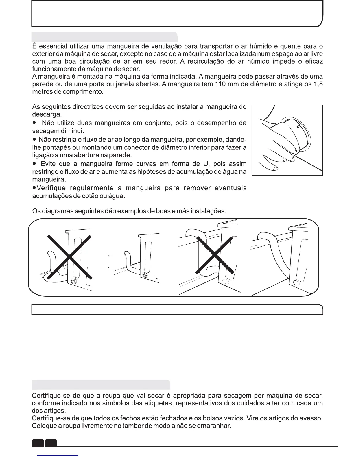 Antes de utilizar a máquina de secar roupa pela