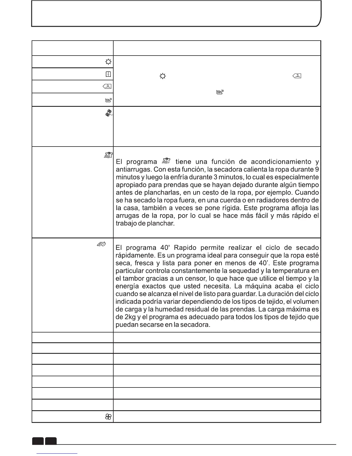 artículos que se vayan a guardar sin planchar, hasta el programa que