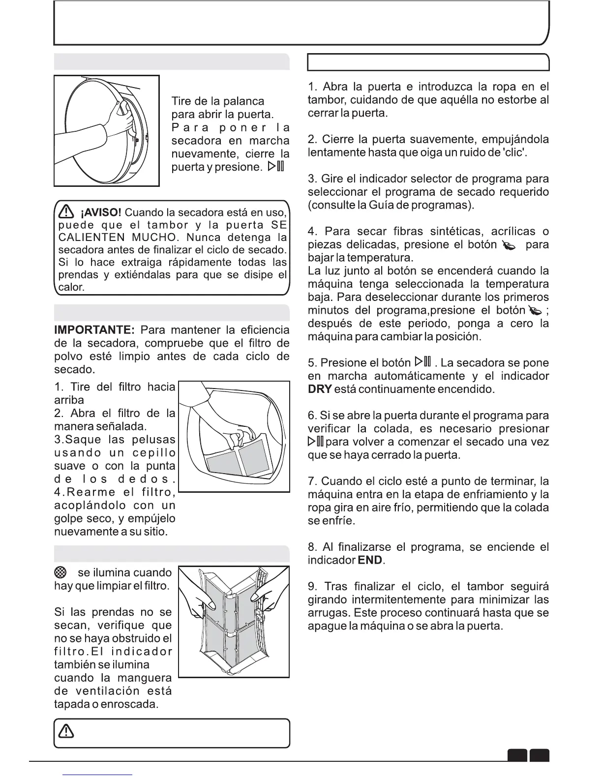 Candy GCV 580NC - Control de Mantenimiento del Filtro; Filtro; Modo de Abrir la Puerta; Operación