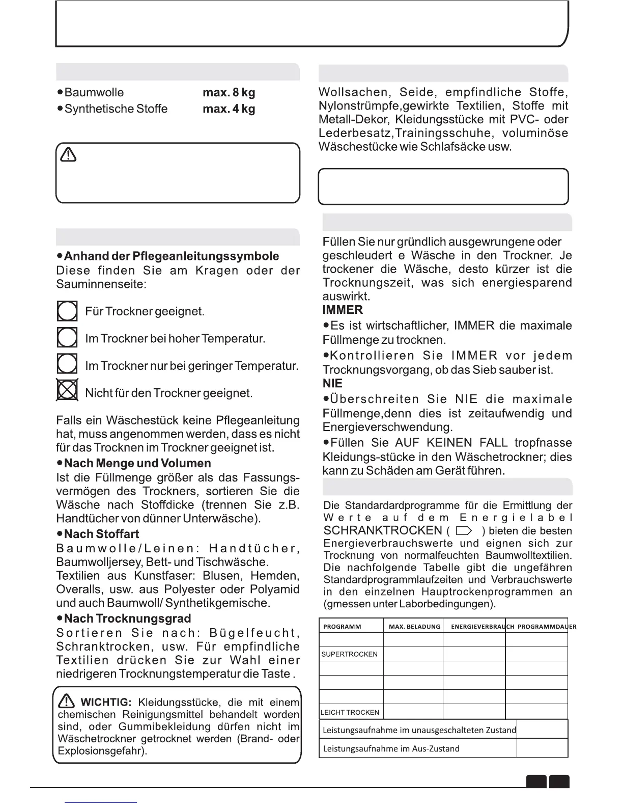 Nicht Für Den Trockner Geeignet: