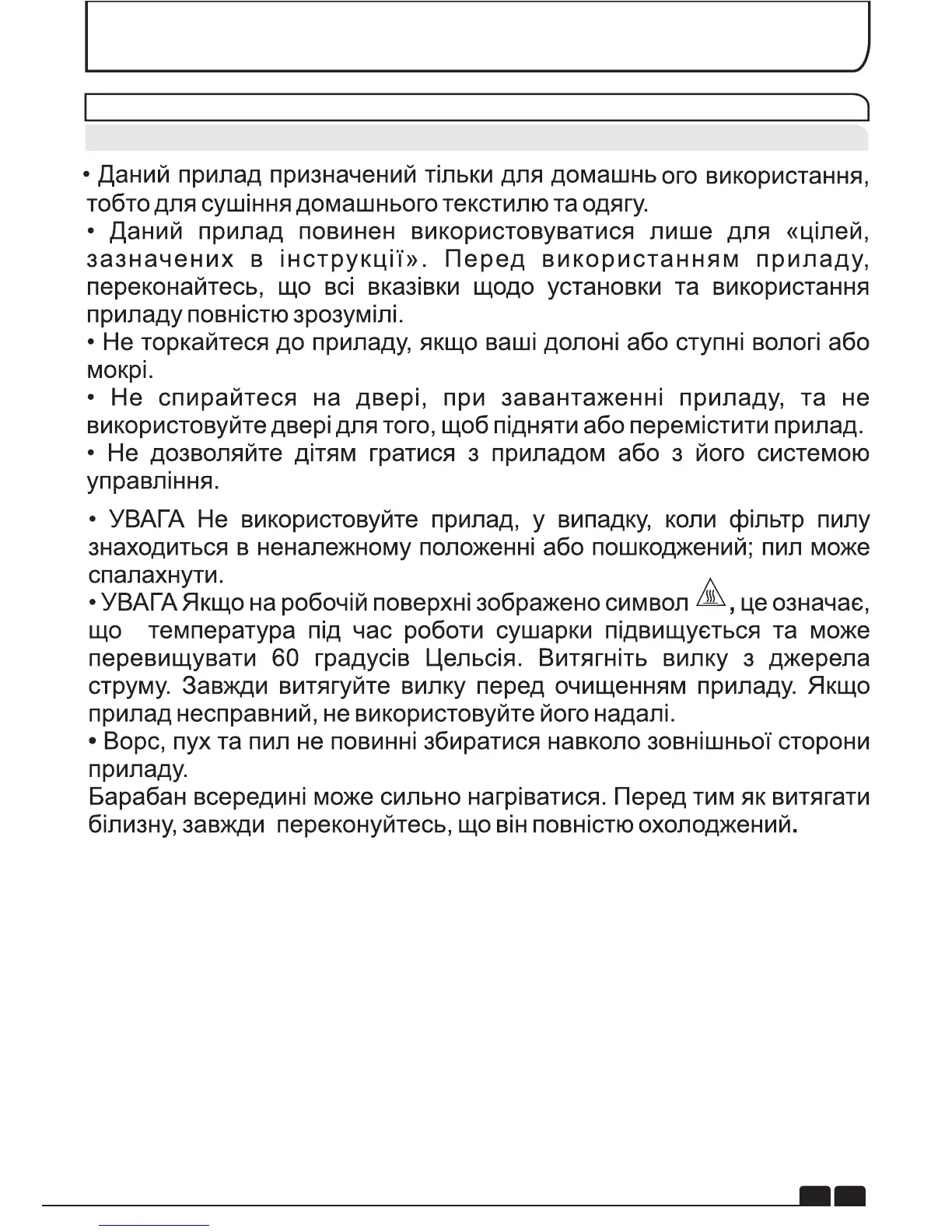 •УВАГА: Ніколи не зупиняйте сушильну машину до закінчення циклу