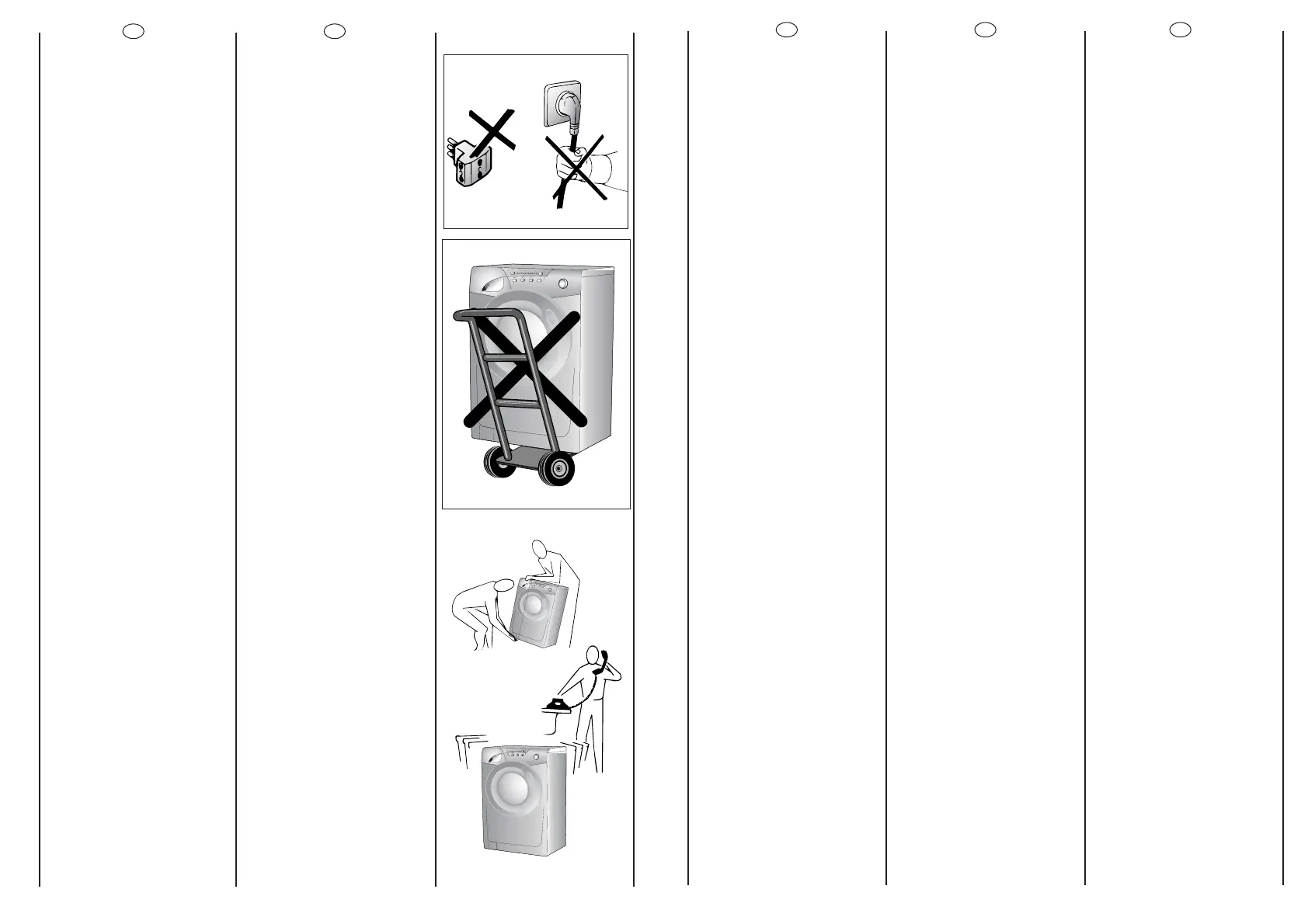 ● Løft aldri vaskemaskinen