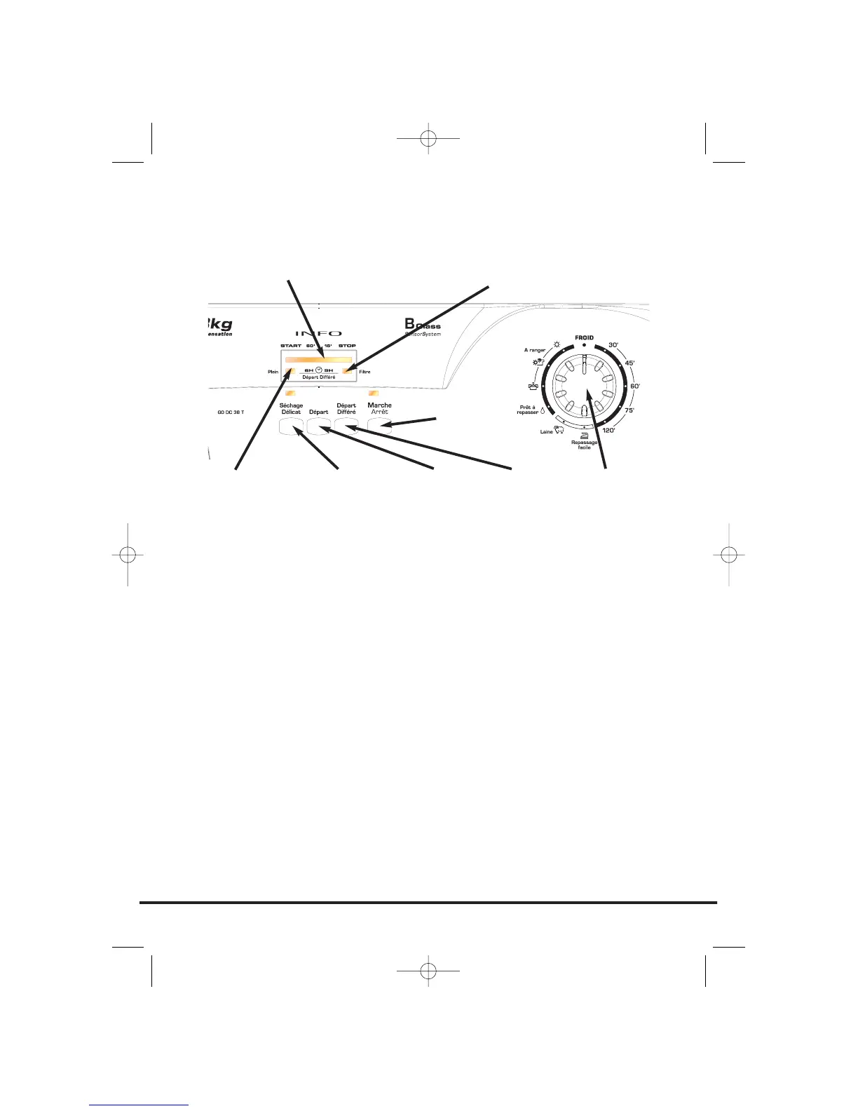 ‘Départ’ – Press Départ to commence the selected drying programme. Press for 5 seconds