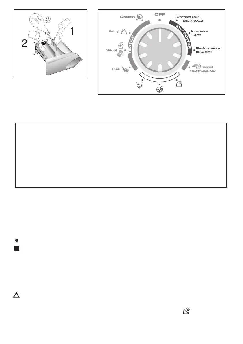 Introducir en el compartimento “2” del dispensador de detergentes el cajetín previsto sobre la cual