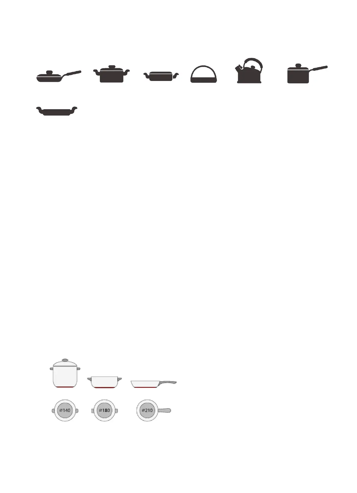 W zależności od wymiaru strefy można zastosować garnki o różnych średnicach, jak na