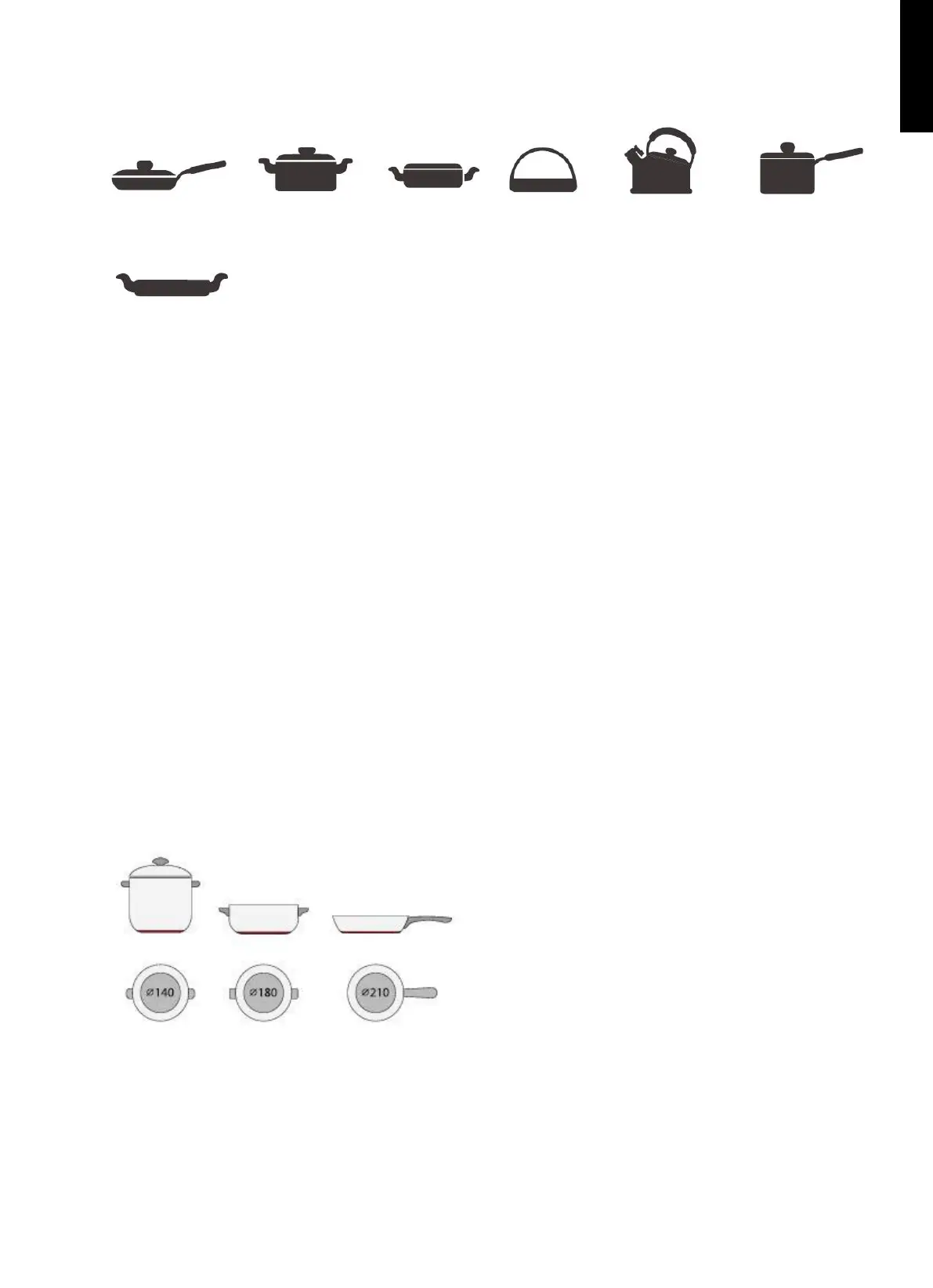 Beroende på zonens dimension kan du använda kastruller av olika diametrar enligt bilden